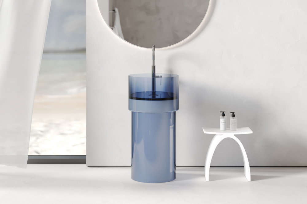 Раковина отдельностоящая прозрачная ABBER Kristall AT2701Saphir синяя