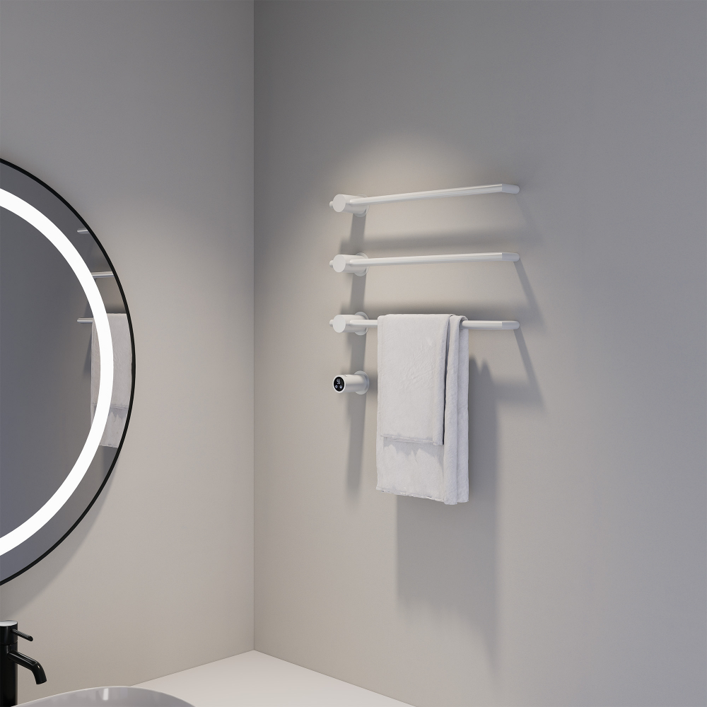 Интеллектуальное управление. Встроенный терморегулятор и таймер дают возможность точно настраивать температуру (45−60 ∘С) и время работы полотенцесушителя (1-8 часов).