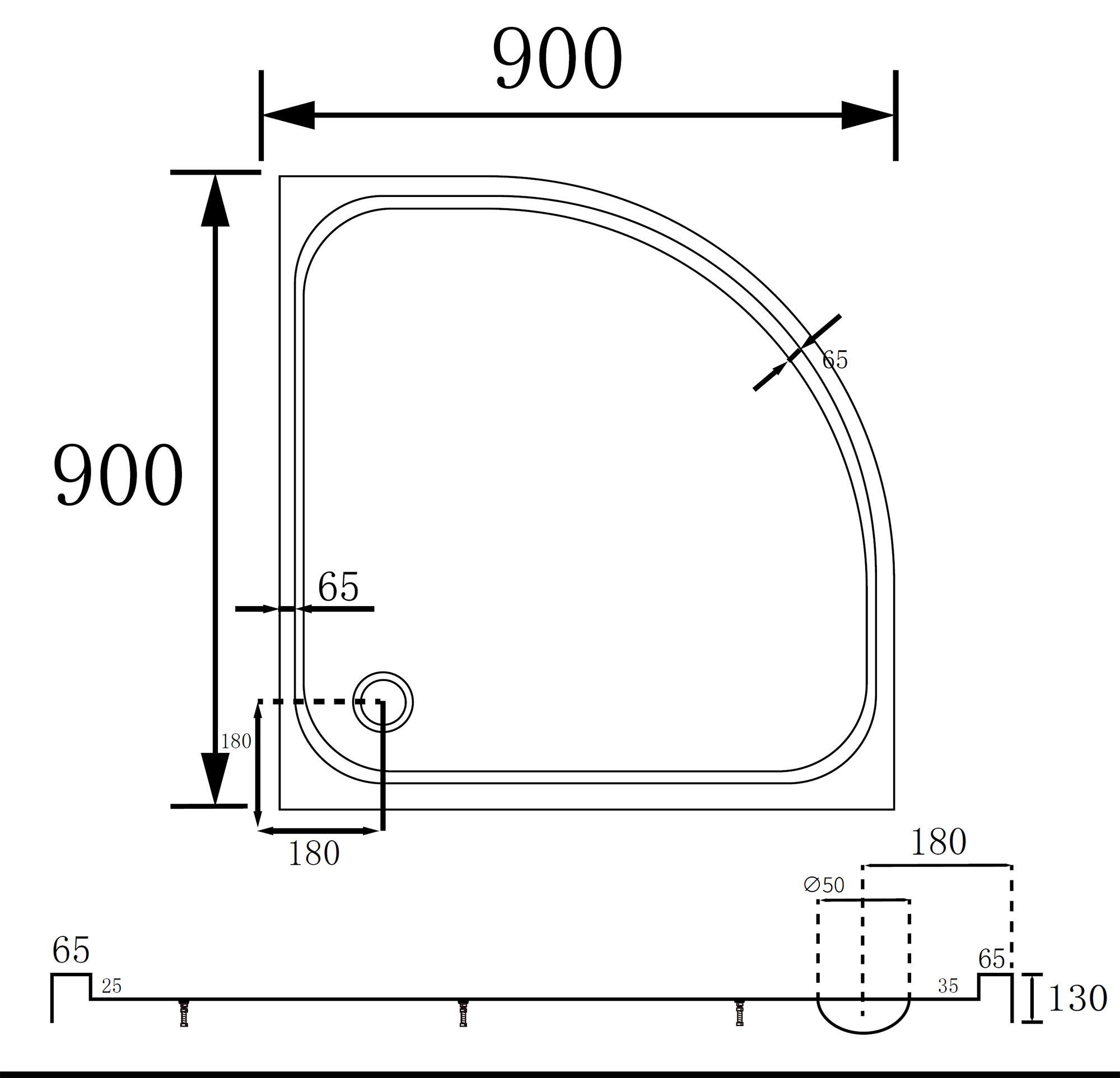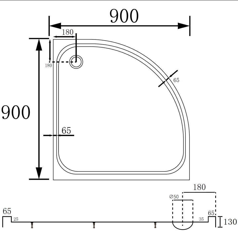 Душевой поддон ABBER AD3A090 90х90 четверть круга, акриловый, белый