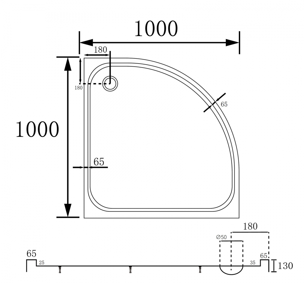 Душевой поддон ABBER AD3A100 100х100 четверть круга, акриловый, белый