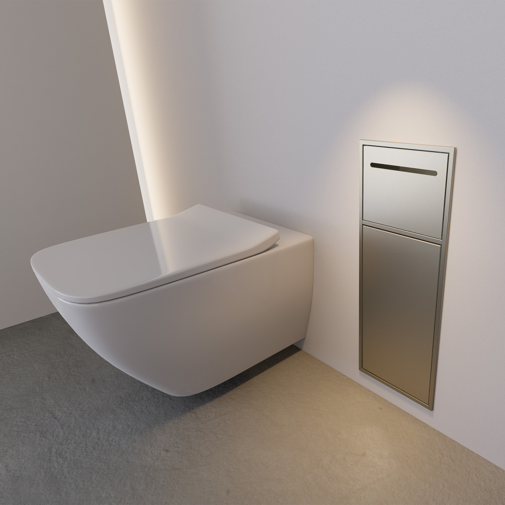 Элегантное и функциональное решение для ванной комнаты — скрытая настенная ниша с корзиной и бумагодержателем. Модель сочетает современный дизайн, практичность и надёжность, позволяя оптимально организовать пространство без ущерба для эстетики интерьера.