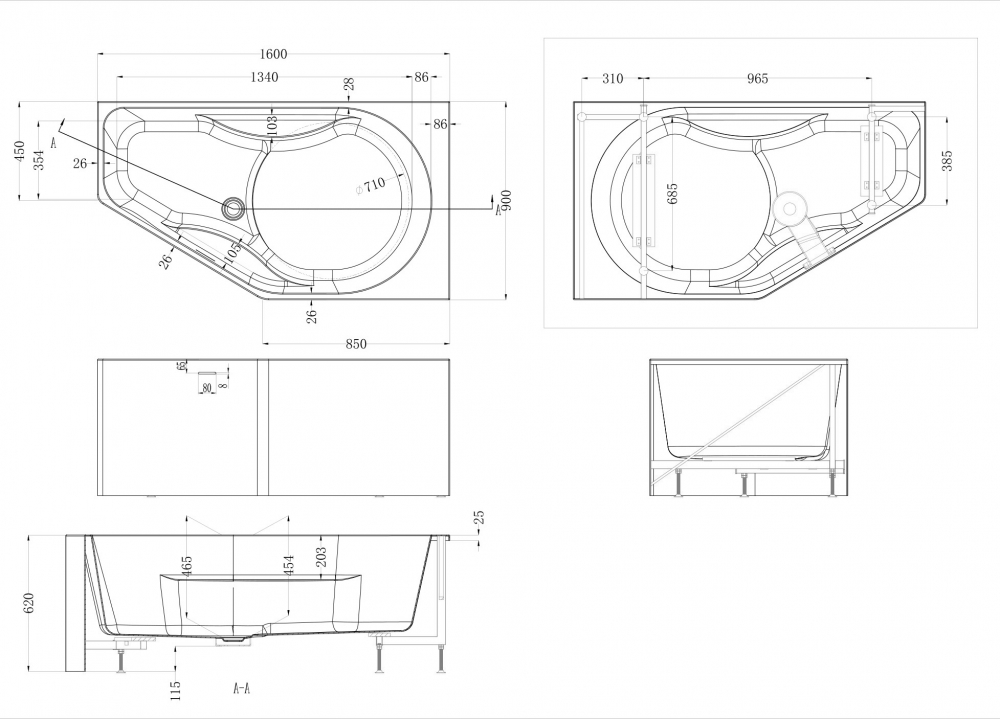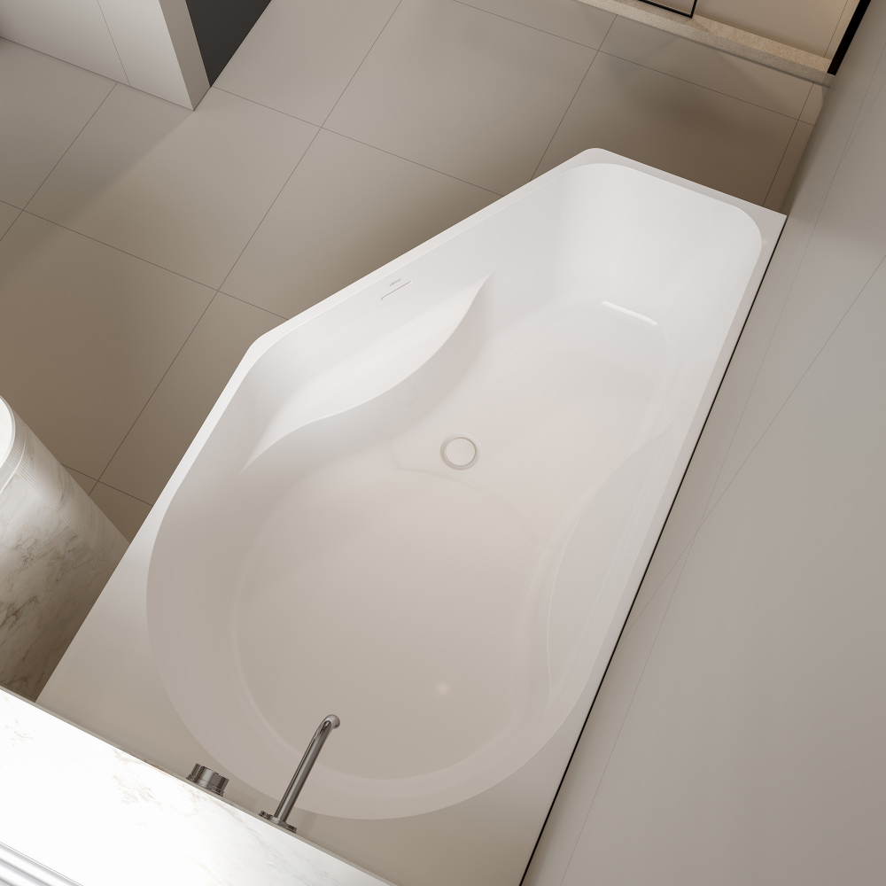 - Форма: эргономичная правосторонняя — обеспечивает удобное расположение в помещении и комфорт во время принятия ванны.