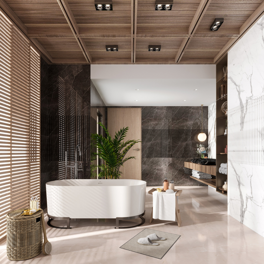 Особого внимания заслуживает конструкция модели. Отдельностоящее исполнение позволяет разместить ванну в центре помещения — так она раскроет свой дизайнерский потенциал в полной мере. Контраст белоснежной чаши и строгих чёрных металлических ножек создаёт эффектный визуальный акцент, а продуманная форма ножек гарантирует надёжность и устойчивость всей конструкции.