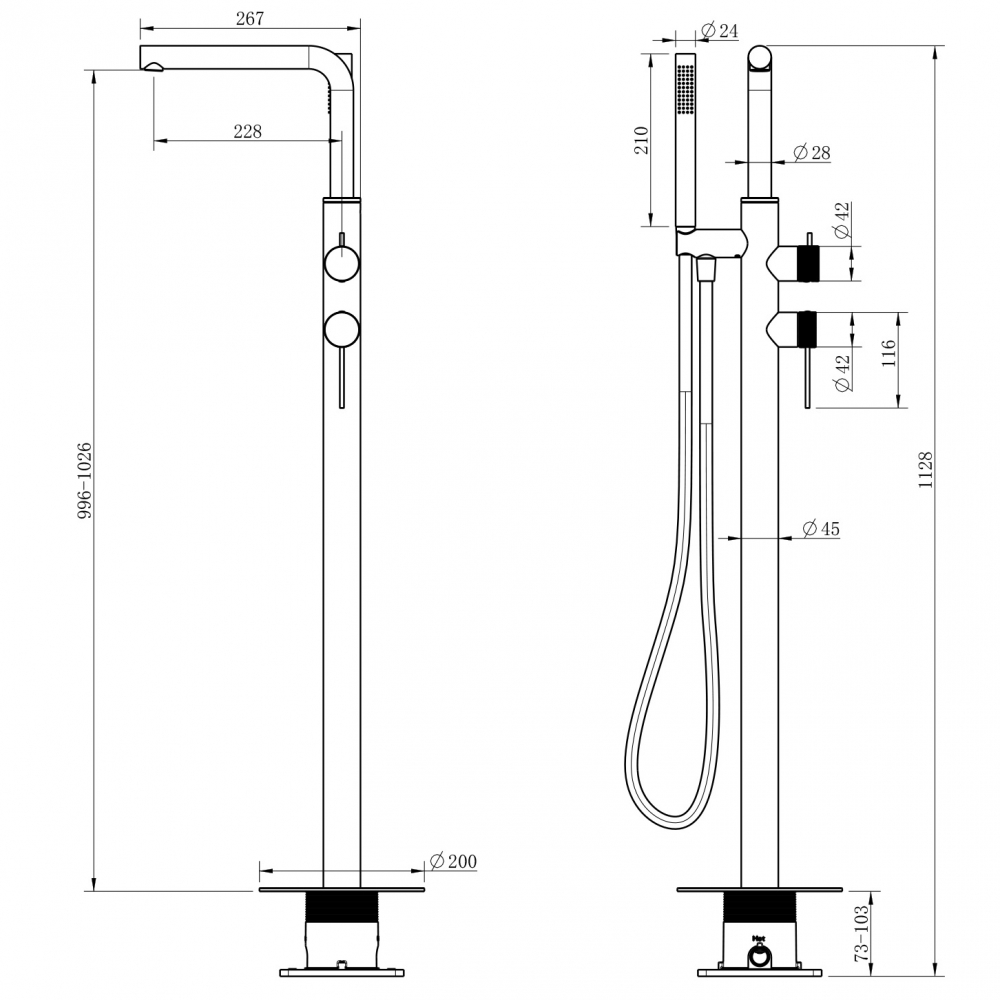 Смеситель ABBER Emotion 316 AF8815BGG напольный для ванны, брашированная оружейная сталь