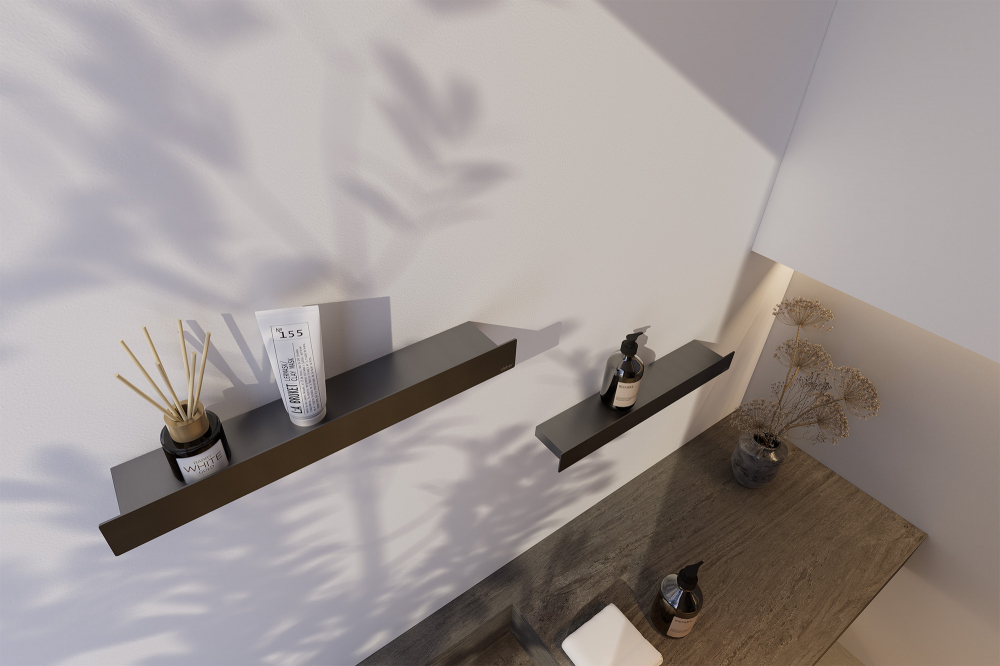 Полка становится не просто местом для хранения, а стильным элементом интерьера, который подчёркивает современный подход к организации пространства и внимание к деталям.