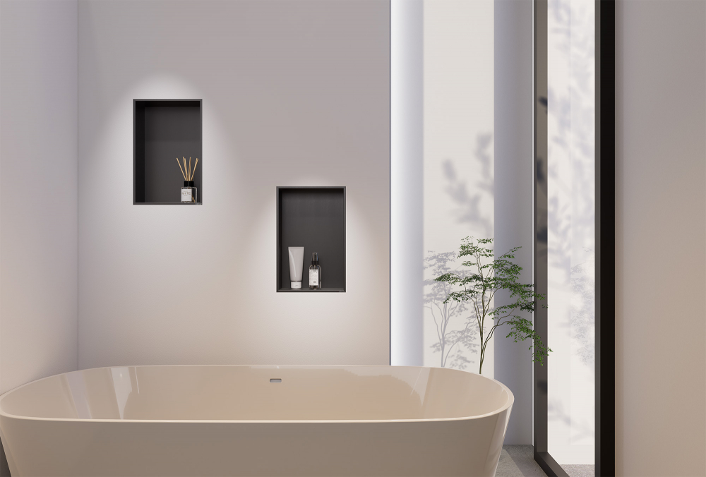 - Скрытая установка. Ниша монтируется в стену, что позволяет экономить пространство и сохранять чистоту линий интерьера.