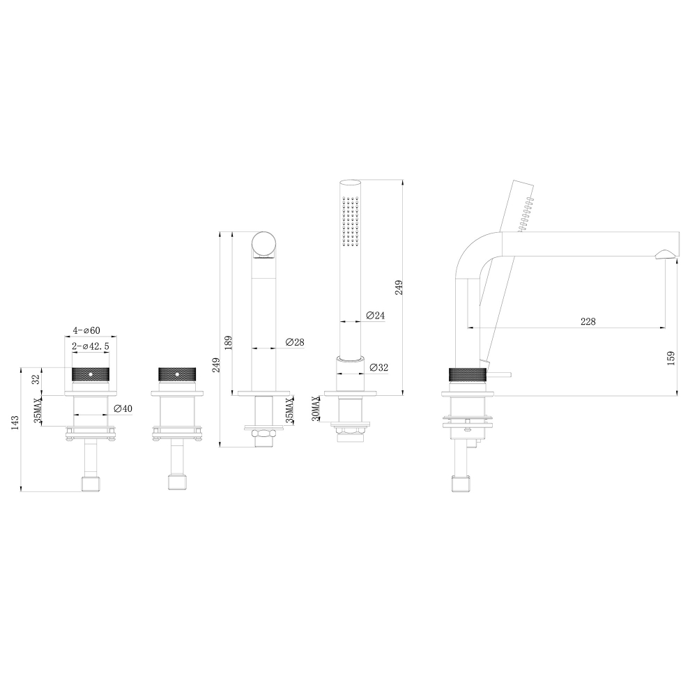 Смеситель ABBER Emotion 316 AF8813BG на борт ванны, брашированное светлое золото