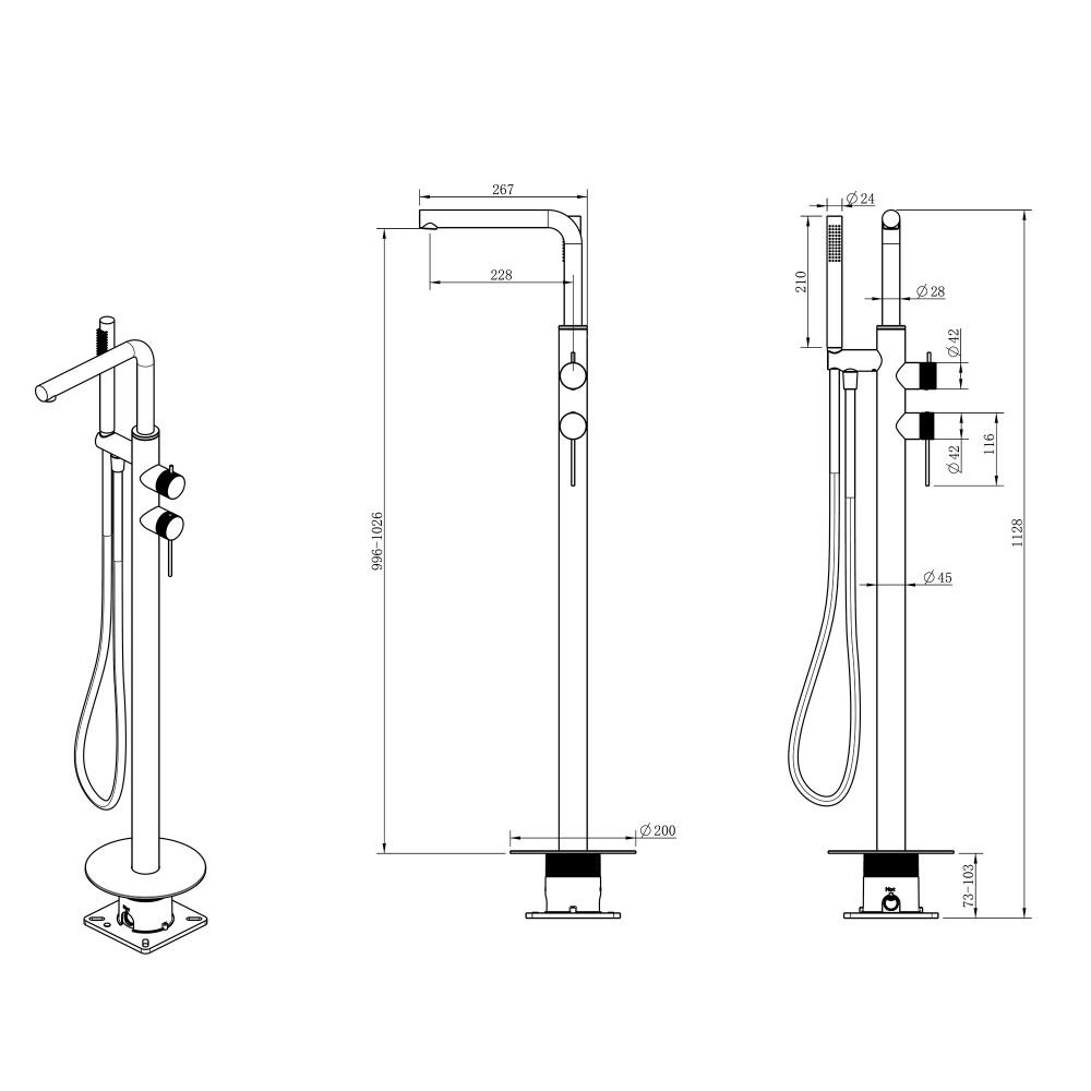 Смеситель ABBER Emotion 316 AF8815BG напольный для ванны, брашированное светлое золото