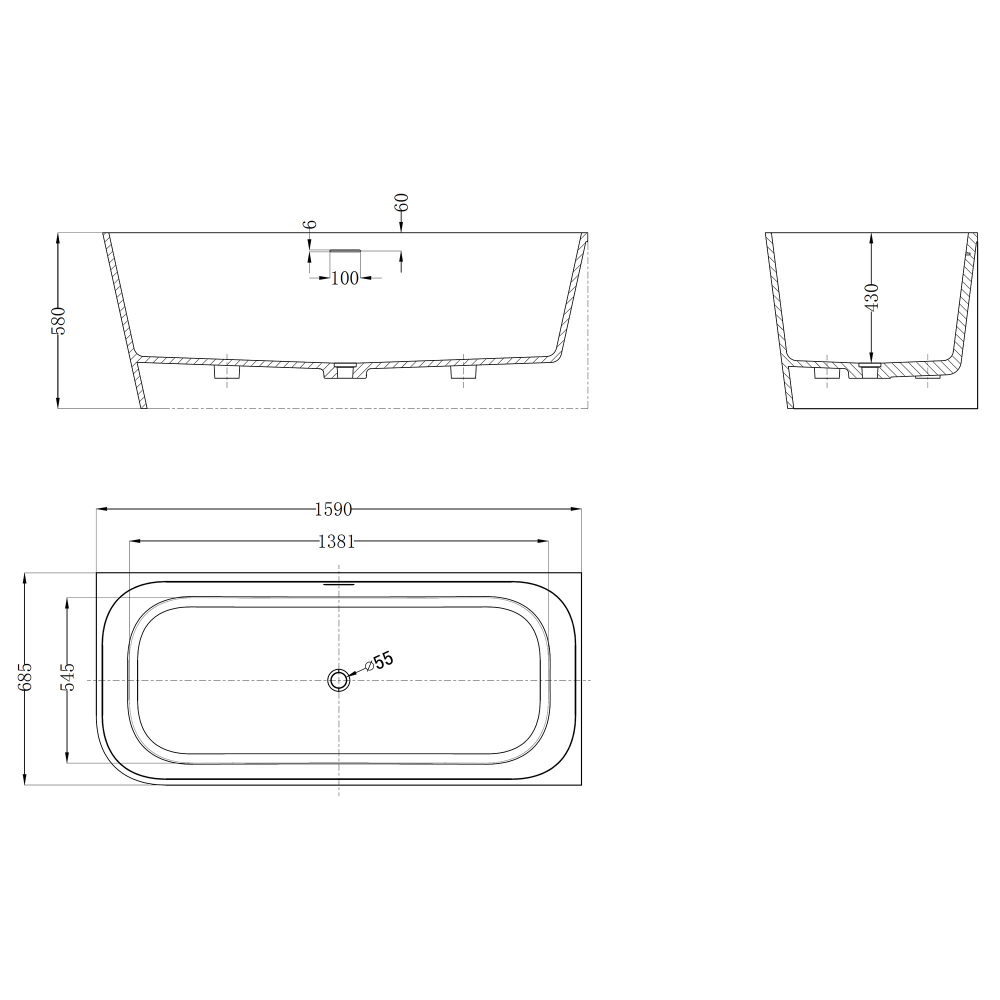 Ванна из искусственного камня ABBER Stein AS9680 R белая матовая