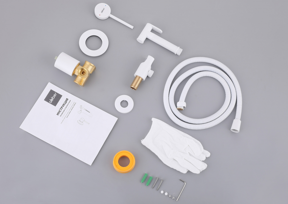 Смеситель ABBER Emotion AF8825W с гигиеническим душем, белый матовый